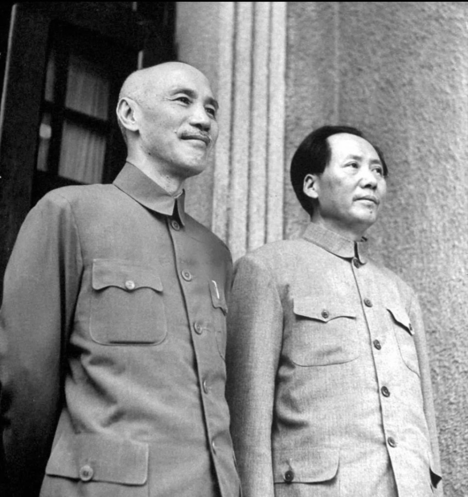 Chiang Kai-shek and Mao Zedong in China, August 28th 1945. Their last meeting.