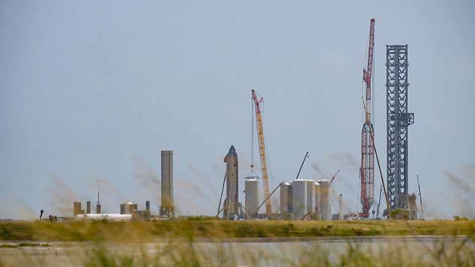 Starbase, Texas Sept 2021. A Super-heavy Booster, Starship SN20 & Tower (CC/Lars plougmann)